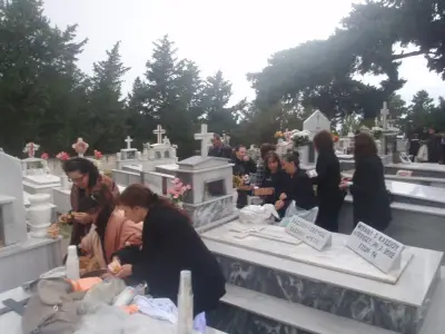 Στην Κω και ειδικά στο ορεινό χωριό Λαγούδι την ημέρα της εορτής του Αγίου Νικολάου, τελείται ένα σπάνιο και παρά πολύ παλιό έθιμο που οι ρίζες του χάνονται στα βάθη των αιώνων. Πρόκειται για το ταφικό έθιμο σύμφωνα με το οποίο μετά τη Θεία Λειτουργία οι πιστοί πηγαίνουν στους τάφους των κεκοιμημένων τους όπου τρώνε τοπικά παραδοσιακά φαγητά θέλοντας έτσι να δείξουν ότι οι κεκοιμημένοι δε χαθήκαν αλλά είναι μαζί τους και παραμένουν ενταγμένοι στη ζωή της οικογένειας.