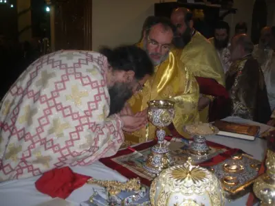 Κατά το Μέγα Αρχιερατικό Εσπερινό χοροστάτησε ο Σεβασμιώτατος Μητροπολίτης Κώου και Νισύρου κ. Ναθαναήλ συμπαραστατούμενος από τον ηγούμενο της Ιεράς Μονής Ιβήρων Πανοσιολογιώτατο Αρχιμανδρίτη Ναθαναήλ, τον Πρωτοσύγκελο της Μητροπόλεώς μας Πανοσιολογιώτατο Αρχιμανδρίτη Χρυσόστομο Πίτση, το Γενικό Αρχιερατικό Επίτροπο Πρωτοπρεσβύτερο Ιωάννη Διακοπαναγιώτη, ο οποίος εόρτασε και τα 42 χρονιά συνεχούς διακονίας στην άμπελο του Κυρίου μας, και τους ιερείς της πόλεως της Κω. Τους ύμνους της εορτής απέδωσαν κατανυκτικά οι ιεροψάλτες του μουσικού συνδέσμου ιεροψαλτών Κω «ο Άγιος Ιωάννης ο Ναύκληρος» υπό την διεύθυνση του καθηγητού και πρωτοψάλτου κ. Γεωργίου Σακέλλη.