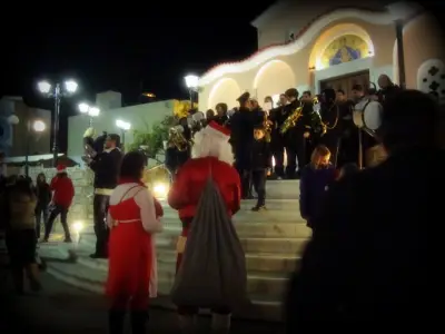 Στη συνέχεια, όλοι περιηγήθηκαν στο Παζάρι και κατέληξαν στο προαύλιο της εκκλησίας. Τα παιδιά του Συλλόγου μας Χοροδιδασκαλείο Κεφάλου, Χοροδιδασκαλείο Αντιμάχειας και Σχολής Αγγελικής χόρεψαν για να τιμήσουν το βασικό προσκεκλημένο παρασέρνοντάς τον στο τέλος να χορέψει μαζί τους. Επίσης, μια ομάδα παιδιών του Γυμνασίου Κεφάλου έκαναν δώρο έναν χορό στον Αϊ-Βασίλη.
