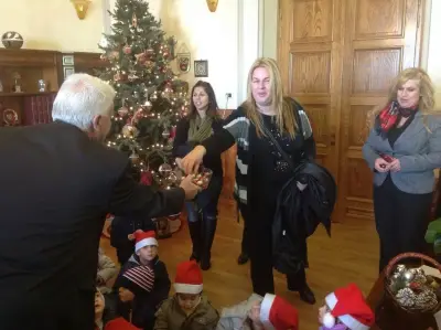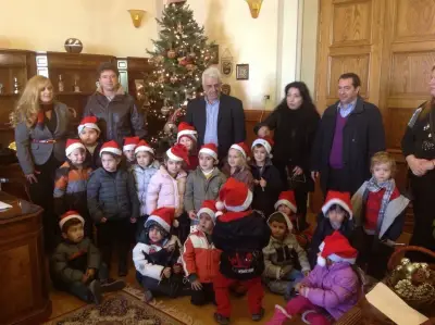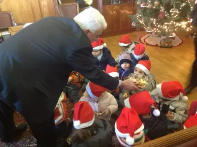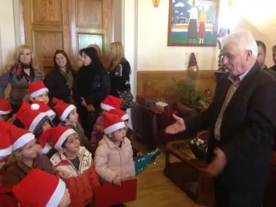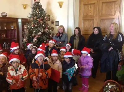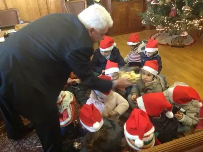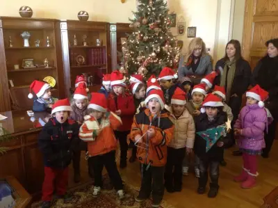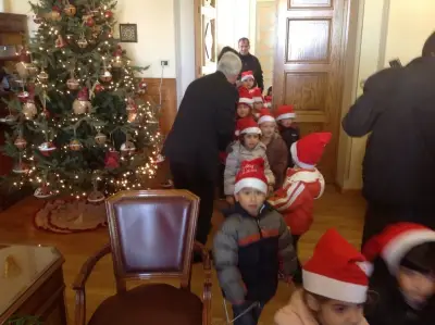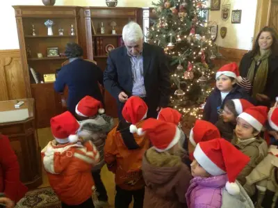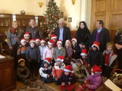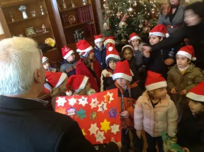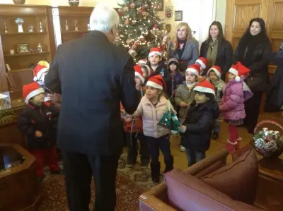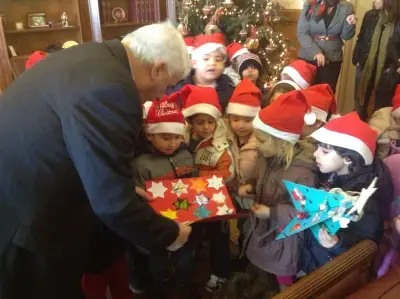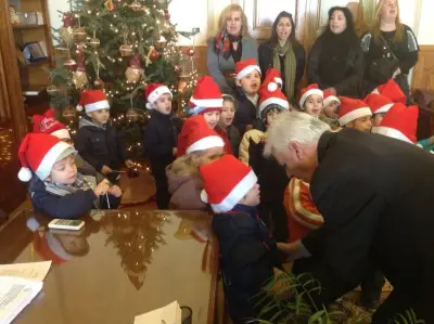 Τα Κάλαντα των Χριστουγέννων από τα παιδιά του Παιδικού Σταθμού Αμερικής στον Δήμαρχο.Φωτό