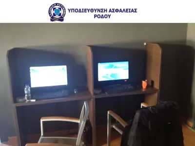 Ειδικότερα, στο πλαίσιο της καταπολέμησης της παράνομης διεξαγωγής τυχερών παιγνίων, πραγματοποιήθηκε στοχευμένος έλεγχος στο κατάστημα του 36χρονου, όπου διαπιστώθηκε να έχει εγκαταστήσει και θέσει σε λειτουργία, ηλεκτρονικούς υπολογιστές με λογισμικό πρόγραμμα τυχερών παιγνίων «φρουτάκια» σε διάφορες παραλλαγές, επιτρέποντας την διενέργεια τους από την 62χρονη και τον 30χρονο.