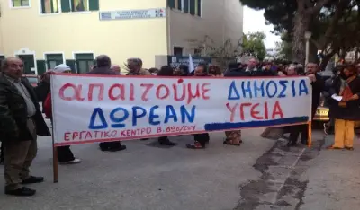 προσλήψεις μόνιμου προσωπικού, για να πληρωθούν άμεσα όλα τα δεδουλευμένα στους εργαζόμενους, για να πεταχτούν οι επιχειρήσεις έξω από τα νοσοκομεία. Να εκσυγχρονιστούν με μηχανήματα και αναλώσιμα.Να επιστραφούν πίσω όλα τα κλεμμένα στα ταμεία,να λειτουργήσουν τα ιατρεία ΕΟΠΥΥ στελεχωμένα με όλες τις ειδικότητες.Να σταματήσουν οι προκλητικές χαριστικές διευκολύνσεις στην μεγαλοεργοδοσία ,να καταβληθούν οι οφειλές. Να μη μείνει κανένας ανασφάλιστος χωρίς ιατροφαρμακευτική περίθαλψη. Καταδικάζουμε τη κυβερνητική πολιτική που υποχρηματοδοτεί και εμπορευματοποιεί την Υγεία προς όφελος του κεφαλαίου και προειδοποιούμε κάθε επίδοξο τοπικό ή «κεντρικό» κυβερνήτη ότι δεν θα επιτρέψουμε να παίξει με την υγεία τη δικιά μας και των παιδιών μας.