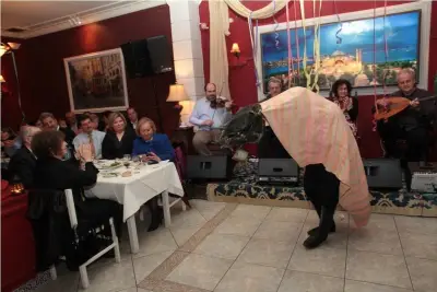 Μόλις το γεύμα ολοκληρώθηκε μια έκπληξη περίμενε τους συμπατριώτες μας, η οποία ήταν και η αρχή του γλεντιού. Ο Πέτρος Μαστόρος και το συγκρότημα του άρτι αφιχθείς από την Κω έδωσαν το έναυσμα με τους παραδοσιακούς χορούς Κοκάλα και Λιγγέρι υπό τους ήχου της ζωντανής ορχήστρας. Στη συνέχεια όλοι επέδειξαν τις χορευτικές τους ικανότητες και το κέφι κορυφώθηκε. Ταυτόχρονα εντύπωση έκανε η λαχειοφόρος αγορά η οποία ήταν πλούσια σε δώρα πολλά εκ των οποίων ήταν από την ιδιαίτερη πατρίδα μας!