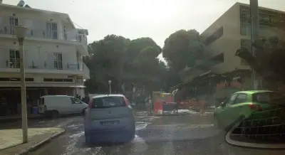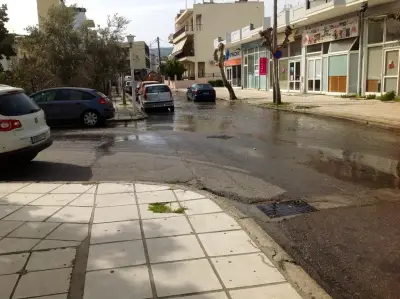 Λόγω εργασιών για το έργο «Προμήθεια συστήματος ελέγχου και μείωσης διαρροών στο προβληματικό δίκτυο ύδρευσης της Δ.Ε.Υ.Α.Κω» τα συνεργεία του εργολάβου που έχει αναλάβει το έργο έκοψαν έναν αγωγό έτσι ώστε να μπει ''κλειδί'' με αποτέλεσμα να βγει στο δρόμο όλο το νερό το οποίο υπήρχε μέσα στον αγωγό που κόπηκε.