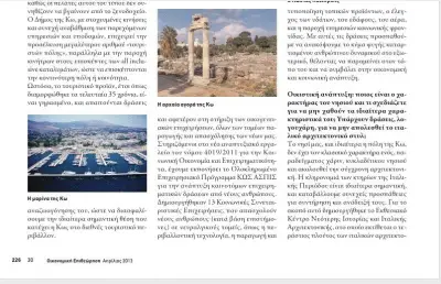 Οικιστική ανάπτυξη: ποιος είναι ο χαρακτήρας του νησιού και τι σχεδιάζετε για να µην χαθούν τα ιδιαίτερα χαρακτηριστικά του;Υπάρχουνδράσεις,λογουχάρη, για να µην απολεσθεί το ιταλικό αρχιτεκτονικό στυλ; Τονησίµας,καιιδιαίτεραηπόλητηςΚω, δενέχειτονκλασσικόχαρακτήραενός,πα- ραδείγµατος χάριν, κυκλαδίτικου νησιού και ακολουθεί την σύγχρονη αρχιτεκτονι- κή. Η κληρονοµιά των κτηρίων της Ιταλι- κής Περιόδου είναι ιδιαίτερα σηµαντική, και καταβάλλουµε συνεχείς προσπάθειες για συντήρηση και ανάδειξή τους. Για το σκοπόαυτόδηµιουργήθηκετοΕκθεσιακό Κέντρο Νεότερης Ιστορίας και Ιταλικής Αρχιτεκτονικής,στοοποίοεκτίθεταιοτε- ράστιοςπλούτοςτωνιταλικώναρχιτεκτο νικών σχεδίων εκείνης της περιόδου. Είναι δεσεεξέλιξη οενιαίοςχωροταξικός σχεδιασµός για ολόκληρη την Κω, µε τον οποίοθακαθοριστούνκανόνεςοικιστικής και επιχειρηµατικής ανάπτυξης του νησι- ού, καθώς και προστατευόµενεςπεριοχές ιδιαίτερου φυσικού κάλλους και περιβαλ- λοντικής αξίας.