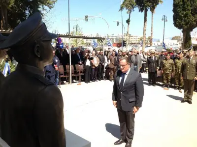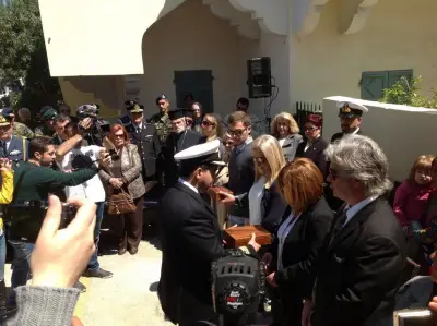 Για τον Λόγο αυτό στο νησί μας βρέθηκαν σήμερα ο υπουργός Εθνικής Άμυνας, Πάνος Παναγιωτόπουλος, οι συγγενείς των 3 ηρώων ,ο Αρχηγός ΓΕΕΘΑ, Στρατηγός Μιχαήλ Κωσταράκος, ο Αρχηγός ΓΕΣ Αντιστράτηγος Αθανάσιος Τσέλιος, ο Αρχηγός ΓΕΑ Αντιπτέραρχος (Ι) Ευάγγελος Τουρνάς και ο Αρχηγός ΓΕΝ Αντιναύαρχος Ευάγγελος Αποστολάκης ΠΝ.