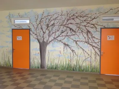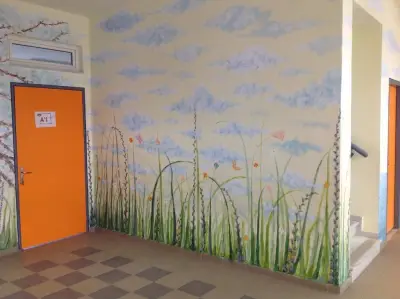 Το σχολείο γέμισε χρώμα χάρη στην καταπληκτική και εξαιρετικά σεμνή Δασκάλα των εικαστικών του σχολείου , κ ΑΦΡΟΔΙΤΗ ΔΗΜΟΒΙΤΗ, η οποία μοχθεί ζωγραφίζοντας τους τοίχους του σχολείου.