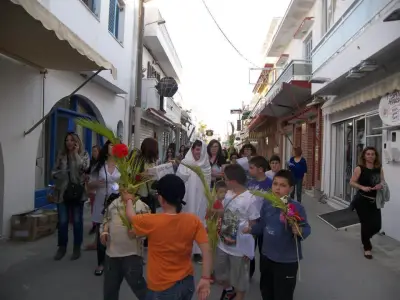 Το έθιμο του Λαζάρου το συναντάμε και στην Κω. Το παιδί που αναπαριστούσε το Λάζαρο, τυλιγμένο σε ένα σεντόνι, ήταν και αυτό στολισμένο με κίτρινα λουλούδια. Αμοιβή της παρέας για την αναπαράσταση τα αυγά για το δάσκαλο. Τα πιο μεγάλα παιδιά, οι "πρωτόσχολοι", έπαιρναν την εικόνα του Λάζαρου, την έβαζαν πάνω σε μια ειδική κατασκευή που στόλιζαν με δεντρολίβανο -ήταν, λέει, η Βηθανία, η πατρίδα του- και γύριζαν στις στάνες. Οι βοσκοί τους φίλευαν αυγά, τυριά και μυζήθρες για τις λαμπρόπιτες. Για την ψυχή του Λάζαρου οι γυναίκες ζύμωναν ανήμερα το πρωί ειδικά κουλούρια, τους "λαζάρηδες", τα "λαζαρούδια" ή και "λαζαράκια". "Λάζαρο δεν πλάσεις, ψωμί δεν θα χορτάσεις" έλεγαν, μια και ο αναστημένος φίλος του Χριστού πίστευαν πως είχε παραγγείλει: "Όποιος ζυμώσει και δε με πλάσει, το φαρμάκι μου να πάρει..." Στα "λαζαράκια" έδιναν το σχήμα ανθρώπου σπαργανωμένου, όπως ακριβώς παριστάνεται ο Λάζαρος στις εικόνες. Όσα παιδιά είχε η οικογένεια τόσους "λαζάρηδες" έπλαθαν και στη θέση των ματιών έβαζαν δυο γαρίφαλα. Στην Κω οι αρραβωνιασμένες θα έφτιαχναν ένα λαζαράκι σε μέγεθος μικρού παιδιού, γεμισμένο με χίλια δυο καλούδια και κεντημένο σχεδόν σαν τις κουλούρες του γάμου, για να το στείλουν στο γαμπρό. Τα "λαζαρούδια" πολλές νοικοκυρές τα γέμιζαν με αλεσμένα καρύδια, αμύγδαλα, σύκα, σταφίδες, μέλι, πρόσθεταν πολλά μυρωδικά και τα παιδιά ξετρελλαίνονταν να τα τρώνε ζεστά.