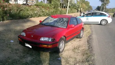 Γύρω στις 18:00 ο οδηγός του αυτοκινήτου που βλέπετε στις φωτογραφίες (κόκκινο civic) κατευθυνόταν προς την πόλη της Κω και στην προσπάθεια του να προσπεράσει προπορευόμενα αυτοκίνητα παρέσυρε 3 ποδηλάτες ο οποίοι βρισκόντουσαν εκείνη την στιγμή έξω από το ξενοδοχείο ΩΚΕΑΝΙΣ.
