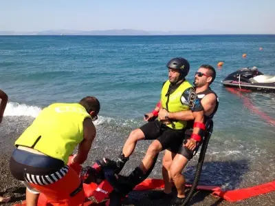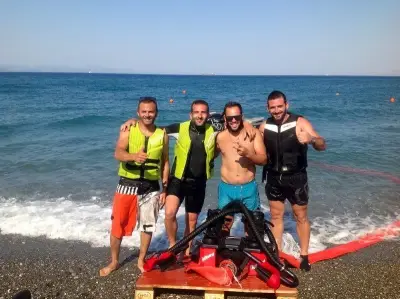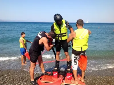 Αυτή την εμπειρία σίγουρα πρέπει να την ζήσετε για αυτό από σήμερα (Πέμπτη 19/6) μπορείτε να επισκεφθείτε τις εγκαταστάσεις των φίλων Κώστα & Βασίλη στο Ψαλίδι (λίγο μετά το ξενοδοχείο ΩΚΕΑΝΙΣ) έτσι ώστε να δοκιμάσετε και εσείς,να κάνετε τρελές φιγούρες,μέσα στο νερό με το Flyboard!!