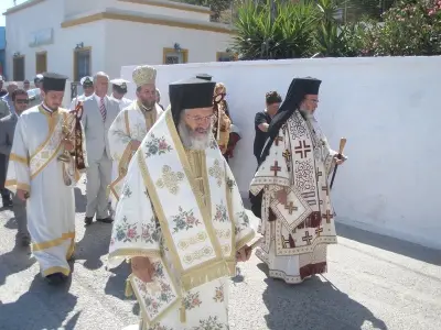 Την κυριώνυμο ημέρα στον όρθρο προεξείχε ο μητροπολίτης Λέρου Καλύμνου κ. Παϊσιος και τελέστηκε αρχιερατική θεία λειτουργία προεξάρχοντος του Μητροπολίτου Ρόδου κ. Κυρίλλου, ακολούθησε η λιτάνευση της ιεράς εικόνας και τεμαχίου των λείψανων του Αγίου στους δρόμους και στα όμορφα παραδοσιακά σοκάκια του νησιού προς ευλογία και αγιασμό του νησιού και των κατοίκων. Ενώ τελεστικέ δέηση υπέρ υγείας όλων των κατοίκων και των προσκυνητών στην πλατεία του Δημαρχείου του νησιού και η πομπή στην συνεχεία κατέληξε στο Μητροπολιτικό ναό της Παναγίας της Ποταμίστισσας.