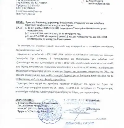 Η. Στις 30-5-2011 παίρνουμε απάντηση από το υπουργείο Εσωτερικών με το έγγραφο 20172/20-5-2011 που αναφέρει: