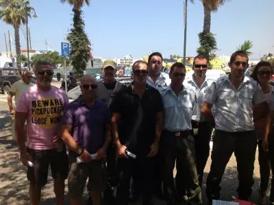 Στην Κω συγκεντρώθηκαν σήμερα το πρωί στο Δημαρχείο οι δημοτικοί αστυνόμοι καθώς και οι υπόλοιποι εργαζόμενοι του Δήμου διαμαρτυρόμενοι για την κατάργηση της Δημοτικής Αστυνομίας και της υπηρεσίας των Σχολικών Φυλάκων και τη θέση σε διαθεσιμότητα των εργαζομένων σ' αυτές, καθώς και τη διεύρυνση της επιτροπείας των Δήμων μέσω του «Παρατηρητηρίου Οικονομικής Αυτοτέλειας των ΟΤΑ»