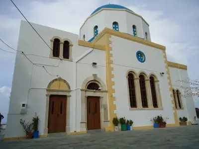 Ἀρχικὰ ἐκτιμοῦμε ὅτι πρέπει νὰ ὑπῆρξε ἕνας ναὸς σαφῶς μικρότερος τοῦ σημερινοῦ, ὁ ὁποῖος ἦταν ἀφιερωμένος στὸ Γενέσιο τῆς Θεοτόκου, καθὼς οἱ κώδικες τῆς Ἱερᾶς Μητροπόλεως μᾶς πληροφοροῦν ὅτι «ὁ Μανώλης Σεβαστοῦ Λαμπρόγλου ἀφιέρωσε τὸ 1886 ἕνα ἀμπέλιον», ἐνῶ, τὸ 1909 ὁ ναὸς τοῦ Λαγουδιοῦ, βοήθησε στὴν οἰκοδόμηση τοῦ ναοῦ τῆς Εὐαγγελίστριας.