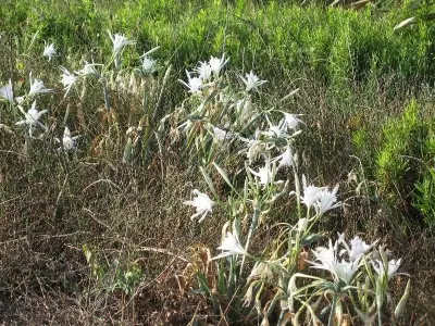 Το σπάνιο κρινάκι της Παναγιάς είναι είδος υπό παρακολούθηση και προστασία, βγάζει τα φύλλα του τον χειμώνα και το καλοκαίρι ξεραίνονται σαν να καίγονται από την καυτή άμμο και εκείνη ακριβώς την στιγμή μέσα στον καυτό ήλιο του καλοκαιριού πετάγονται κάτασπρα τα άνθη του τεράστια, συμμετρικά, αρωματικά και ανοίγουν αργά το απόγευμα προς το βράδυ για να φθάσουν στο ζενίθ του ανοίγματος την νύκτα που το άρωμα τους γίνεται αντιληπτό από μακριά προσελκύοντας τις νυκτόβιες πεταλούδες προς επικονίαση.