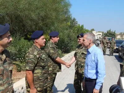 Όσον αφορά την κατάσταση στην οποία βρίσκεται η χώρα μας επισήμανε πως αν και η χώρα μας περνάει μια δύσκολη περίοδο το προσωπικό των ενόπλων δυνάμεων επιτελεί με τεράστια επάρκεια το καθήκον του.Μάλιστα η ηγεσία του υπουργείου της Εθνικής Άμυνας περιβάλει με αγάπη και σεβασμό αυτούς που φυλάνε τις ελληνικές Θερμοπύλες.