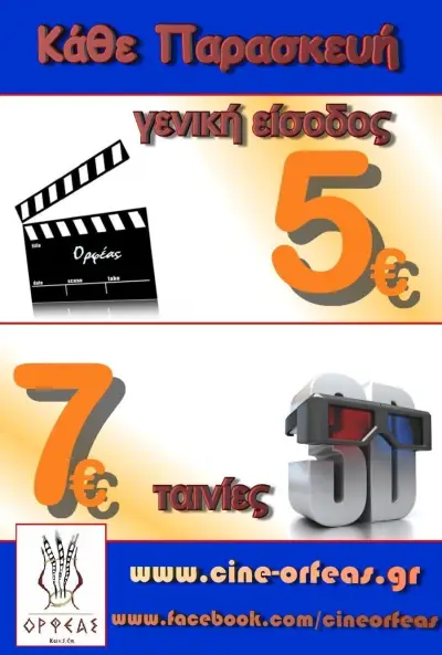 Για όλο το καλοκαίρι κάθε Παρασκευή μειωμένη είσοδος: € 5 & για τις 3D ταινίες: € 7!