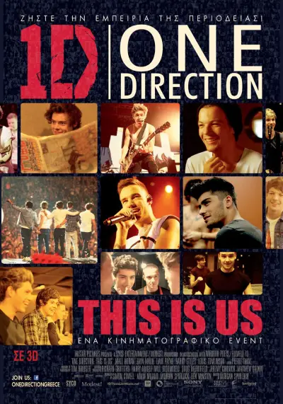 Υπόθεση: Το ONE DIRECTION: THIS IS US, πραγματεύεται τη συναρπαστική ιστορία ενός παγκόσμιου μουσικού φαινομένου. Εμπλουτισμένη με υλικό από live συναυλίες, αυτή η ταινία μας διηγείται τις ιστορίες των Niall, Zayn, Liam, Harry και Louis. Θα παρακολουθήσουμε πως τα κατάφεραν και έκαναν το γιγαντιαίο άλμα προς τη δόξα και την κορυφή. Ξεκίνησαν από το X-Factor, κατέκτησαν τον κόσμο και έφτασαν να δίνουν συναυλίες στο διάσημο O2 Arena στο Λονδίνο. Ακούστε τα από τους ίδιους και δείτε μέσα από τα δικά τους μάτια, πως είναι να είσαι ένας από τους One Direction.