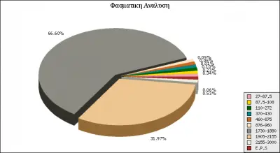 | Στο διάγραμμα παρουσιάζεται η ανάλυση της μετρούμενης πυκνότητας ισχύος σε φασματικές περιοχές στο σημείο μέτρησης 1 | |