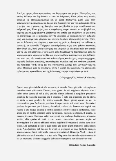 Η εκδήλωση είναι αφιερωμένη στην μνήμη των 103 εκτελεσθέντων, στην Κω, από τους Γερμανούς Ιταλών Αξιωματικών (1943-2013).