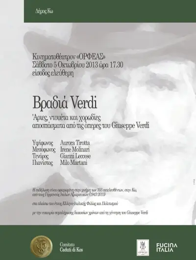 Σάββατο 5 Οκτωβρίου (17:30): Μουσική εκδήλωση με έργα του Τζουζέπε Βέρντι στον Ορφέα