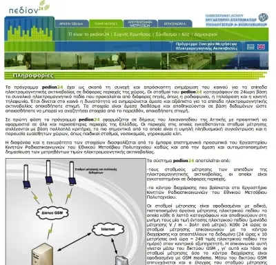Ειδικότερα, το πρόγραμμα pedion24, το οποίο αναπτύχθηκε από το Εργαστήριο Κινητών Ραδιοεπικοινωνιών του Εθνικού Μετσόβιου Πολυτεχνείου, το Εργαστήριο Ραδιοεπικοινωνιών του Αριστοτελείου Πανεπιστημίου Θεσσαλονίκης και το Εργαστήριο Συστημάτων Υπολογιστών & Επικοινωνιών του Πανεπιστημίου Αιγαίου, έχει σκοπό τη συνεχή καταγραφή των επιπέδων της ηλεκτρομαγνητικής ακτινοβολίας ενώ τα αποτελέσματα των μετρήσεων δημοσιεύονται καθημερινά στην ιστοσελίδα του προγράμματος.
