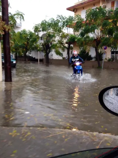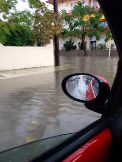 Όπως βλέπετε και στις φωτογραφίες που μας έστειλε φίλος αναγννώστης τα νερά στην Εθνική Αντιστάσεως σήμερα το μεσημέρι ξεπέρασαν και το ύψος του πεζοδρομίου!!