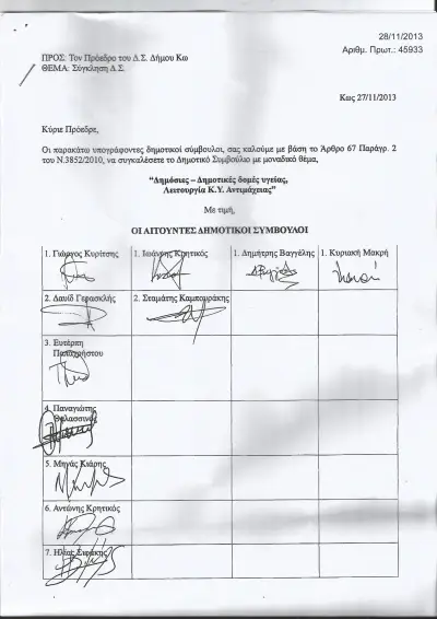 Οι δημοτικές παρατάξεις της αντιπολίτευσης επικαλούνται το άρθρο 67 παρ. 2 του Ν. 3852/2010, με το οποίο η δημοτική αρχή και ο Πρόεδρος του Δημοτικού Συμβουλίου υποχρεούνται να συγκαλέσουν το συμβούλιο εντός 6 ημερών.