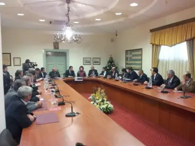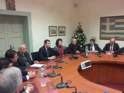 Την πολυμελή αποστολή του Επιμελητηρίου και του Δήμου Διδύμων Τουρκίας με επικεφαλής τον Πρόεδρο του Δημοτικού Συμβουλίου και τον αρμόδιο Αντιδήμαρχο καθώς και τα στελέχη του Επιμελητηρίου Δωδεκανήσου υποδέχθηκαν, σήμερα, στην αίθουσα του Δημοτικού Συμβουλίου Κω ο Αντιδήμαρχος Κω, κ. Θεοδόσης Νικηταράς μαζί με τον Αντιπρόεδρο του Δημοτικού Λιμενικού Ταμείου Κω, κ. Νίκο Νασταχανίδη και το Διευθυντή του Ενιαίου Φορέα Τουρισμού, κ. Νίκο Σοφό.