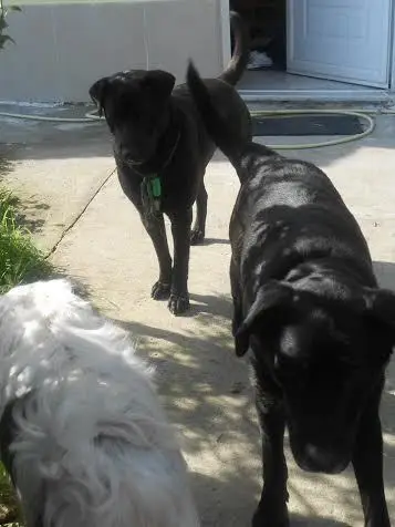 Πρόκειται για 2 μεγαλόσωμα μαύρα θηλυκά ημίαιμα Labrador, και ένα μικρότερο κουτάβι, ημίαιμος Γερμανικός ποιμενικός. Τα μεγάλα σκυλιά φορούν περιλαίμιο με πράσινες ετικέτες με ονόματα Ηλέκτρα & Βέρα αντίστοιχα.