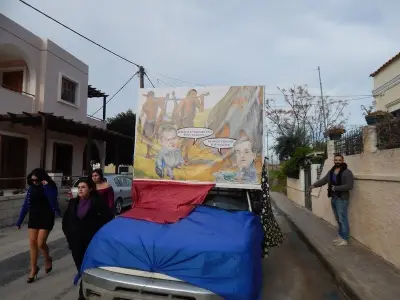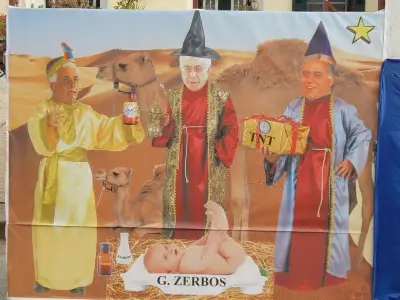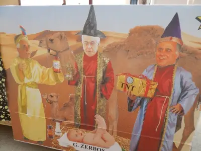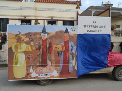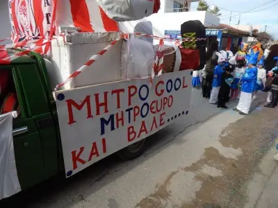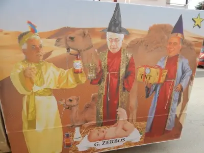 Την παράσταση έκλεψε το άρμα με το Δήμαρχο Κώστα Καϊσερλη,τον Αριστοτέλη Παυλίδη,τον Γιώργο Κυρίτση και το ''νεογέννητο'' Γ. Ζερβό..Δείτε φωτό...
