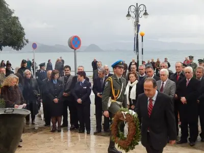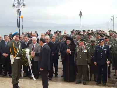 Τιμές κατά τις καταθέσεις στεφάνων απέδωσαν άγημα της 80 ΑΔΤΕ και η Φιλαρμονική του Δήμου Κω.