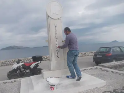 Τον δικό τους τρόπο για να διαμαρτυρηθούν βρήκαν ορισμένοι Νισύριοι οι οποίοι θέλοντας να δείξουν την δυσαρέσκεια τους στην εγγραφή ξένων στα δημοτολόγια της Νισύρου έγραψαν στο Ηρώο την φράση ''Ή ταν ή Πακιστάν''.Συνεργεία του δήμου διόρθωσαν την φράση γράφοντας ξανά ''Ή ταν ή επιτάς''.
