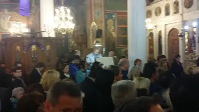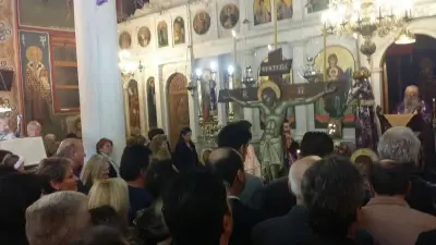 Μεγάλη Πέμπτη σήμερα και στον Ιερό ναό του Αγίου Νικολάου σε μία κατανυκτική ατμόσφαιρα ο Μητροπολίτης Κώου & Νισύρου Ναθαναήλ με τρεμάμενη φωνή λέγοντας το σήμερον κρεμάται επί ξύλου... μετέφερε γύρω γύρω από τη εκκλησία ,στην πλάτη του τον σταυρό.