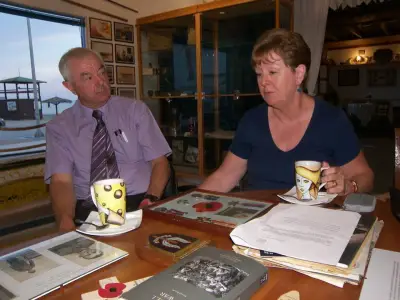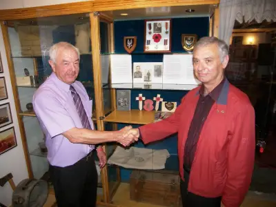 Όταν επισκέφτηκαν το μουσείο στην Καρδάμαινα αποφάσισαν ότι ήταν ο κατάλληλος χώρος να δωρίσουν όλα τα ενθύμια και τα παράσημα του πατέρα τους από τον πόλεμο . Οi KEN -SUE LAIDLER και οι JOAN-ALF SKINNER μετέφεραν με πολύ αγάπη όλα τα ενθύμια από την Αγγλία και στην μικρή και λιτή αυτή τελετή παραδόθηκαν στα μέλη του πολιτιστικού συλλόγου ΑΡΓΩ και τοποθετήθηκαν σε ειδικό χώρο στο μουσείο .