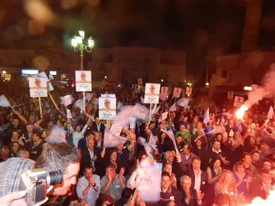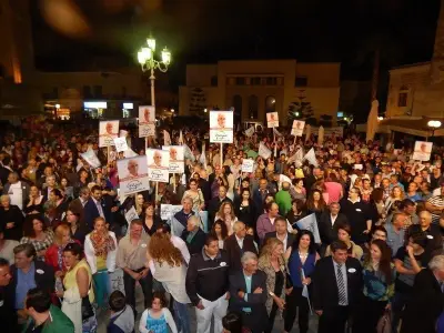Και σήμερα από την πλατεία της ελευθερίας του λαού μας καλούμε τους πολίτες για μια ακόμα φορά να μας ακολουθήσουν και να μας δώσουν την δύναμη να συνεχίσουμε και να καθορίσουμε εμείς μόνοι το μέλλον μας.