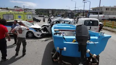 Νέο τροχαίο ατύχημα με τρία οχήματα πριν από λίγο στη Ρόδο. Στο νοσοκομείο διακομίστηκαν τραυματισμένοι δύο αστυνομικοί που επέβαιναν στο περιπολικό, δύο παιδάκια πο επέβαιναν σε αυτοκίνητο τύπου τζιπ που ρυμουκλούσε μια βάρκα και ένας ακόμα οδηγός ιχ που τραυματίστηκε ελαφρά. Ο συνοδηγός που ήταν στο περιπολικό της αστυνομίας φαίνεται σύμφωνα με τις πρώτες μαρτυρίες να έχει τραυματιστεί πιο σοβαρά. Επί ποδός βρίσκεται μεγάλη δύναμη της αστυνομίας ενώ μέσα στις επόμενες ώρες θα αναζητηθούν τα αίτια που παραλίγο να προκαλέσουν μια ακόμα τραγωδία της ασφάλτου στο νησί μας.