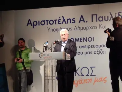 Ο Α. Παυλίδης κατά την ομιλία του σε μεγάλη συγκέντρωση συνδημοτών μας αφού έκανε σκληρή κριτική στην τακτική της σύγκρουσης και της αντιπαράθεσης που χαρακτηρίζει την σημερινή Δημοτική Αρχή αλλά και την προηγούμενη και της οποίας ο φανατισμός οδήγησε τον Δήμο στην στασιμότητα ,ενώ αναφέρθηκε και στον Συνδυασμό που είναι επικεφαλής με τον τίτλο «Κως αγάπη μας».