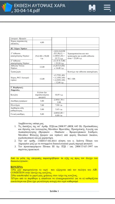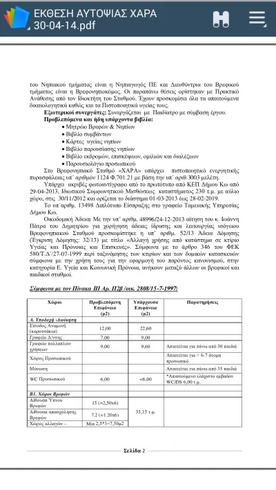Στην συνέχεια έγινε αίτηση για έκδοση άδειας η οποία έπειτα από 3 αυτοψίες της επιτροπής, στις 31/10/2012 δεν έγινε δεκτή από την Επιτροπή που συγκροτείται από 1 Υπάλληλο της Τεχνικής Υπηρεσίας, 1 Υπάλληλο της Πρόνοιας του Δήμου και 1 Υπάλληλο της Διεύθυνσης Δημοσίας Υγείας της Περιφέρειας Νοτίου Αιγαίου διότι δεν πληροί τις προϋποθέσεις της Υπουργικής απόφασης και έγκρισης Αρ. Π2β/οικ. 2808/15-07-97 του ΦΕΚ 645/31-7-1997.