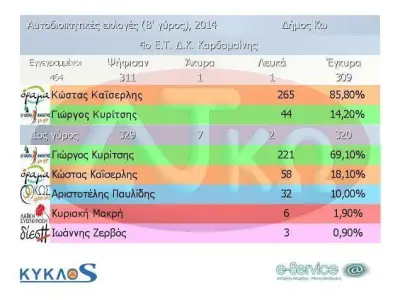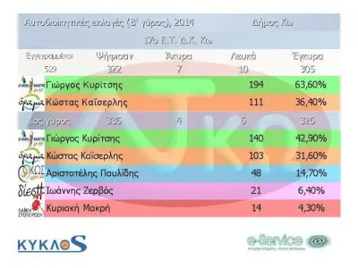 Ξεκάθαρη νίκη Κυρίτση.Δείτε το τελικό αποτέλεσμα για τις εκλογές στο Δήμο της Κω.