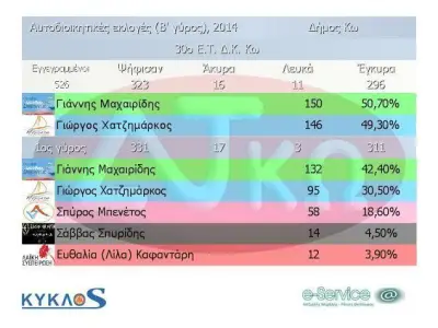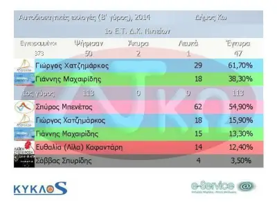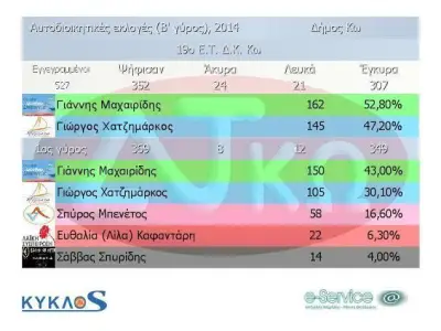 Τα αποτελέσματα για την περιφέρεια στην Κω.