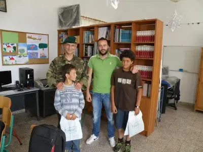 β. Παράλληλα ο Δκτής της 80 ΑΔΤΕ επισκέφθηκε το μονοθέσιο δημοτικό σχολείο Αρκών και πρόσφερε βιβλία και γραφική ύλη στα 2 παιδιά που φοιτούν στο δημοτικό σχολείο.