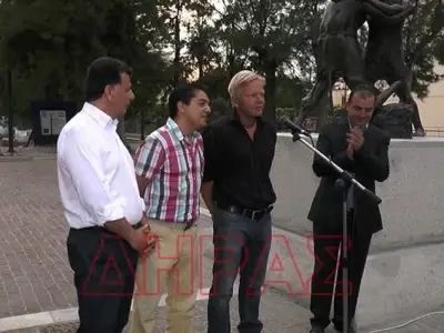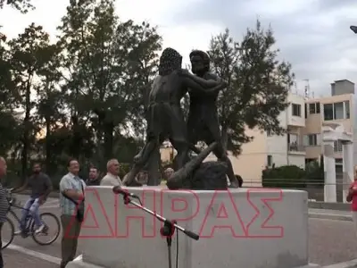 Στην ιστορία της μυθικής πάλης αναφέρθηκε ο ιστορικός και συγγραφέας Βασίλης Χατζηβασιλείου ο οποίος συνεχάρη τη δημοτική αρχή για την πρωτοβουλία της και ευχήθηκε να ακολουθήσουν σύντομα παρόμοιες κινήσεις όπως για παράδειγμα με την προτομή του αρχαιολόγου Χέρτζοκ που ανέσκαψε το Ασκληπιείο. Ξεχωριστή σημασία στην εκδήλωση έδωσε η ανακοίνωση του Φινλανδού σκηνοθέτη Τάαβι Βάρτια ότι το γλυπτό