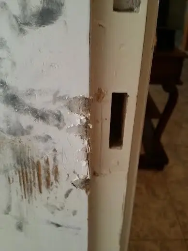 Στις φωτογραφίες που δημοσιεύει το kosnews24.gr μπορείτε να δείτε την πόρτα που διέρρηξε ο δράστης.