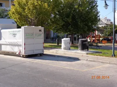 Σε κάθε ένα από τα 4 σημεία έχει τοποθετηθεί ζεύγος υπόγειων κάδων, προκειμένου ο ένας να εξυπηρετεί τα συμβατικά απορρίμματα, και ο δεύτερος την ανακύκλωση.