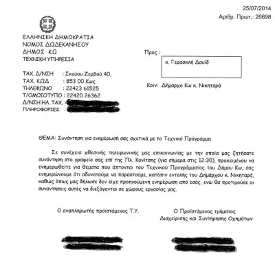 Παραθέτουμε αυτούσια τη συγκεκριμένη παράγραφο: «Ως εκ τούτου θεωρώ ότι η οποιαδήποτε κωλυσιεργία σε αυτή τη διαδικασία έχει ως σκοπό να θέσει εμπόδια στην ορθή πολιτική λειτουργία του Δήμου της Κω και επομένως δημιουργεί ζητήματα πειθαρχικού ελέγχου των υπηρεσιακών στελεχών που εμπλέκονται.