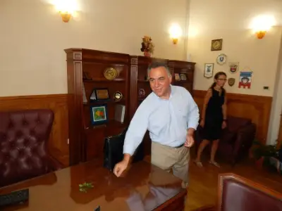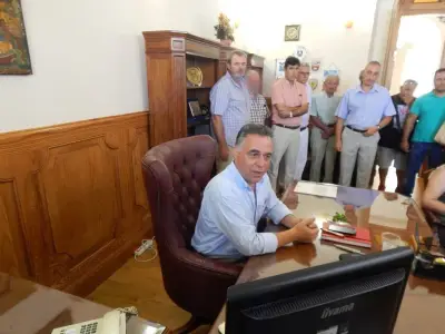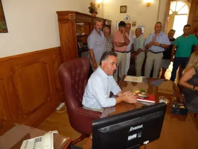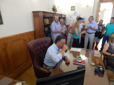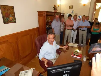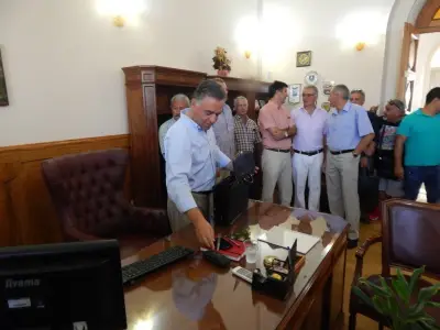 Στη συνέχεια ο Γ. Κυρίτσης υποδέχθηκε τους συμβούλους του αλλά και πολίτες στο γραφείο του όπου και δέχθηκε τις ευχές για καλή αρχή και καλή επιτυχία στα καθήκοντα του.