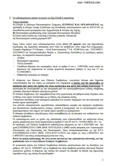 Γι' αυτό λοιπόν το αντικείμενο εργασίας που αν το διαβάσει κανείς προσεκτικά χωρίζεται σε τουλάχιστον δύο διαφορετικά αντικείμενα, το ένα οι πολιτιστικές εκδηλώσεις Δήμου και Οργανισμών!!! και το άλλο η ανάδειξη των ιστορικών πλεονεκτημάτων του νησιού μας που απαιτούν εξειδικευμένες γνώσεις ο κ. Δήμαρχος καλεί αποκλειστικά και μόνο Πτυχιούχους Τμημάτων Ιστορίας και Αρχαιολογίας για να το υλοποιήσουν κατά παράβαση της σχετικής νομοθεσίας και των αποφάσεων του ελεγκτικού συνεδρίου που προβλέπουν ρητά να μην περιορίζεται τεχνητά ο αριθμός των τυχόν ενδιαφερομένων που θα επιθυμούσαν να υποβάλουν σχετική αίτηση αποκλείοντας τη δυνατότητα συμμετοχής στο σχετικό διαγωνισμό πτυχιούχων άλλων σχολών με προσανατολισμό στους τομείς εκείνους που, σύμφωνα με τα ανωτέρω, συνιστούν το αντικείμενο της προς πλήρωση θέσης (Ελ. Συν. Κλιμ. Τμ. 1 Πράξεις 7/2012, 181/2012 και 125.2013).
