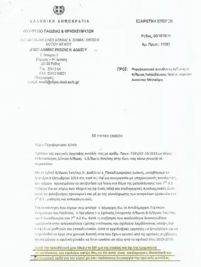 Παραθέτουμε την εισηγητική έκθεση του Δ/ντη Π/θμιας Εκπαίδευσης Δωδεκανήσου.