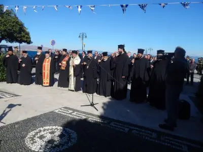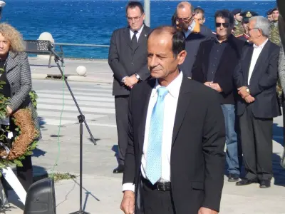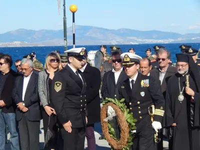 Αμέσως μετά ακολούθησε επιμνημόσυνη Δέηση και κατάθεση στεφάνων στο Μνημείο Ηρώων ενός λεπτού σιγή και ανάκρουση του Εθνικού Ύμνου.